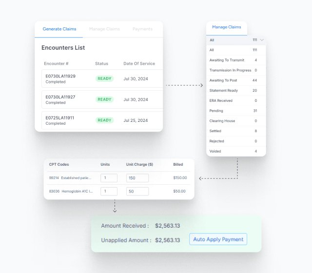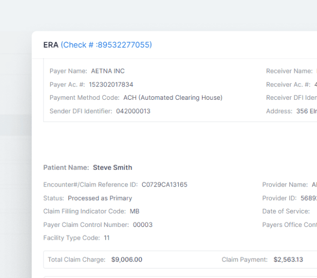 Enhance your reimbursement process with integrated Electronic Remittance Advice (ERA). Automatically receive and process payment and adjustment information from payers. This integration simplifies the reconciliation of claims with payments, reducing manual entry errors and improving financial accuracy.