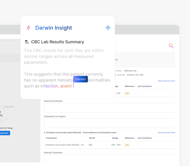 Leverage AI-driven insights as you review lab and imaging results. Our system allows you to easily search for and access specific tests, results, or related data from anywhere within the patient’s chart, enhancing your efficiency and decision-making process.